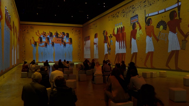 En más de 1.200 metros cuadrados se muestra una película vívida de 360 grados de 30 minutos que explora los paisajes naturales, el patrimonio cultural, la vida del niño rey y el descubrimiento de su tumba.